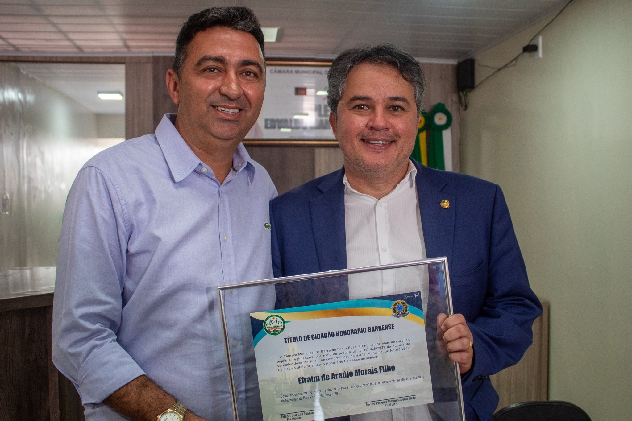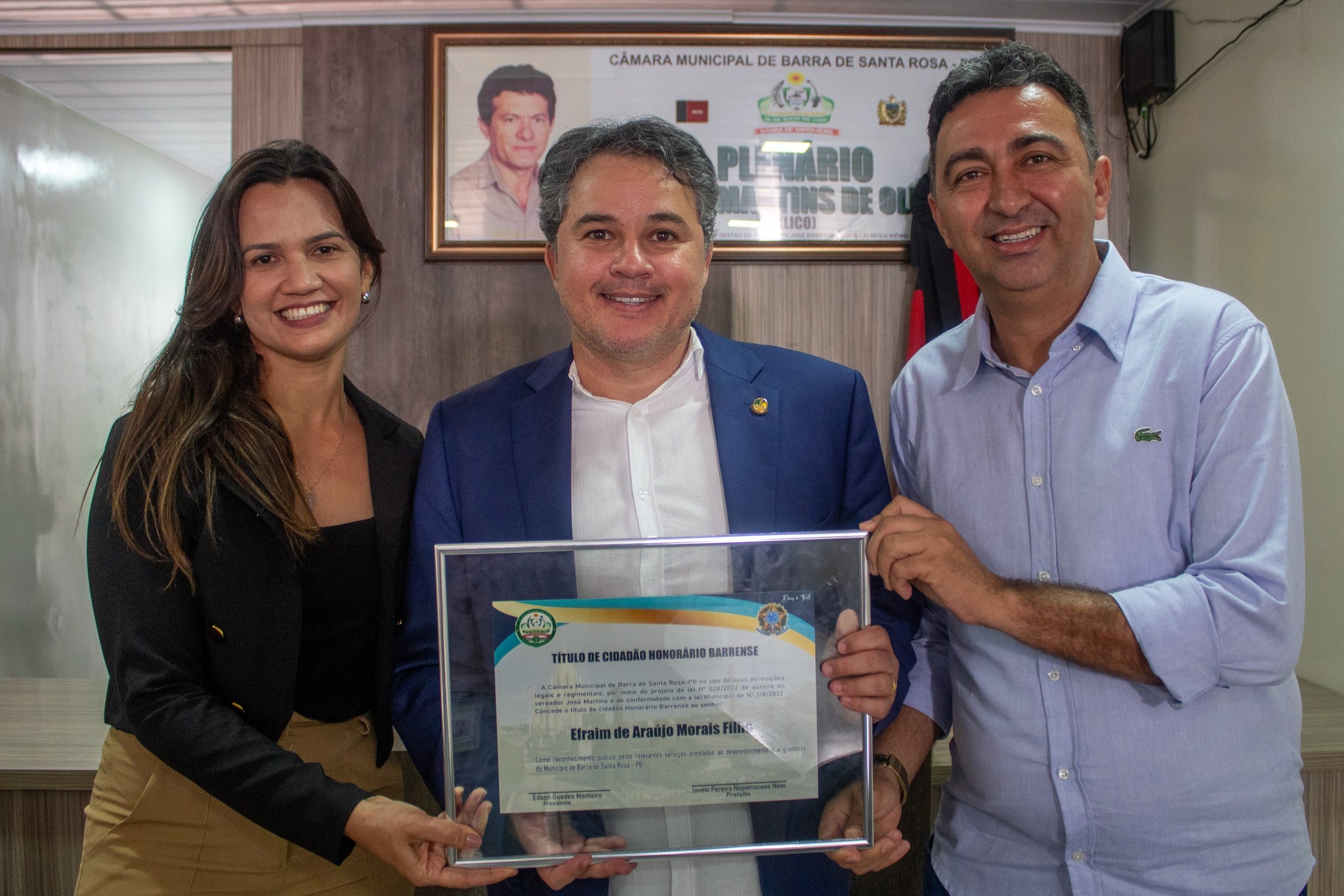 REGISTRO FOTOGRÁFICO DA 6ª SESSÃO SOLENE DE ENTREGA DE TÍTULO DE CIDADÃO BARRENSSE AO SENADOR DA REPÚBLICA EFRAIM FILHO- SESSÃO REALIZADA NO DIA 16/09/2023