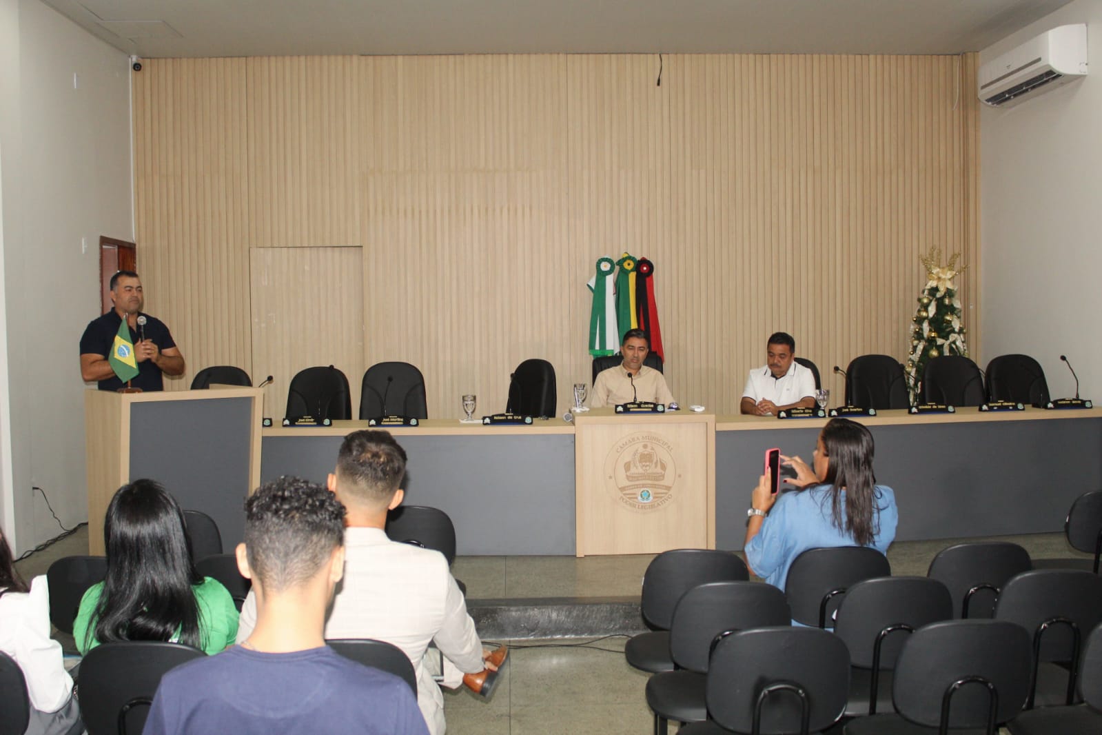Registro fotográfico da 6° sessão solene de 2024 realizada na última quinta-feira, 12/12, sessão está que fez uma justíssima homenagem em forma de moção de aplausos ao artesanato do cuiuiú e também a ONG Pelos e Patas